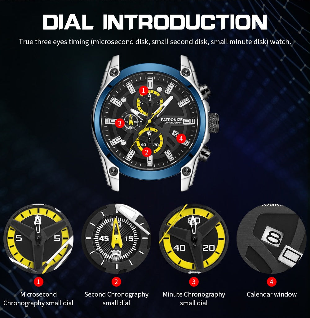 Patronize Blue and Yellow Luminous Chronograph Watch