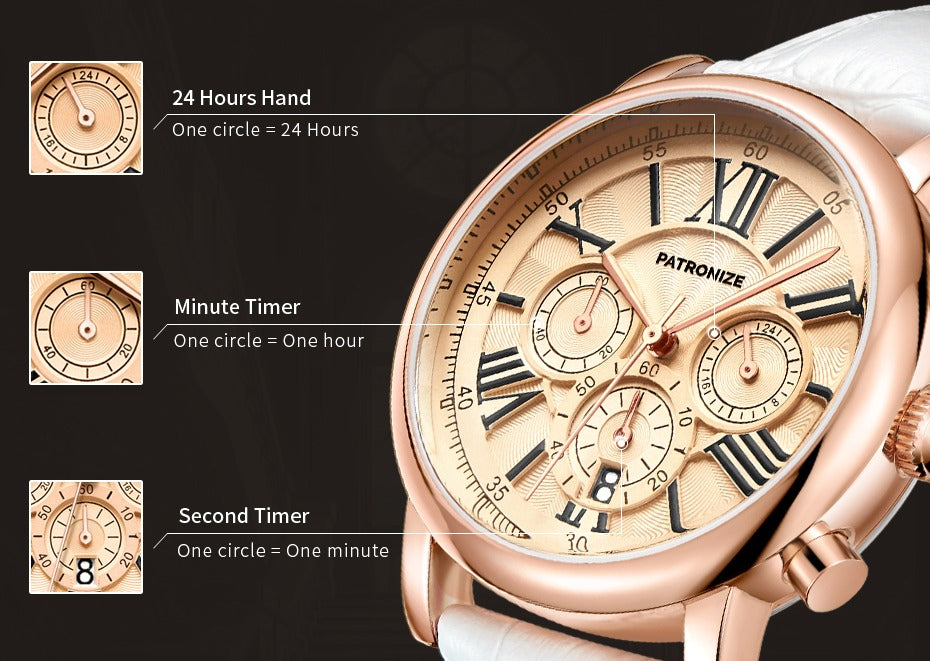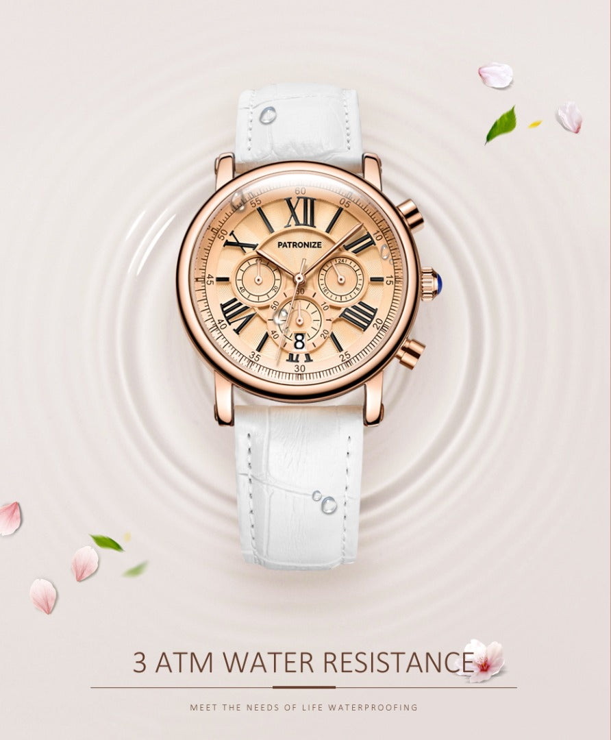 Patronize White Leather Quartz Luxury Waterproof Watch